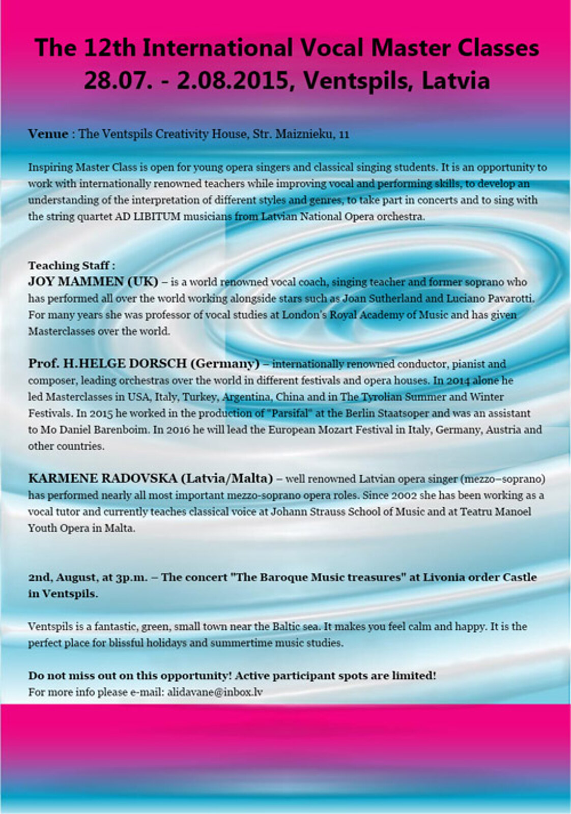 Karmene Radovska, Leiterin Sommerakademie Ventspils/Lettland